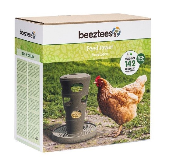 Niet alleen is de Beeztees Kip Voertoren functioneel, maar ook nog eens ecologisch verantwoord. Het gebruik van 100% gerecycled plastic, afkomstig van ongeveer 142 drinkpakken, toont een toewijding aan duurzaamheid. De papiervezels van deze drinkpakken hebben een tweede leven gekregen in de productie van onder andere dozen en toiletpapier, waardoor het hergebruik van materialen wordt gestimuleerd.