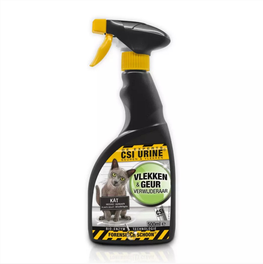 De CSI Urine Kat/Kitten Spray verwijdert (hardnekkige) urinevlekken en geur. Kan ook gebruikt worden bij bijvoorbeeld bloed, braaksel of ontlasting.