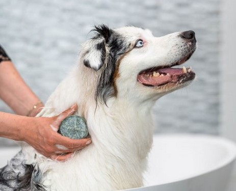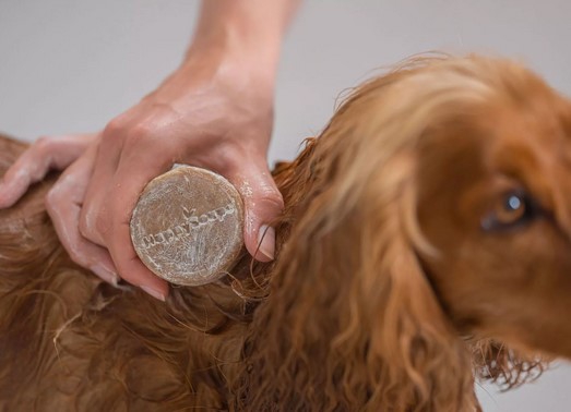 1. Masseer de Shampoo bar over de vacht tot er schuim ontstaat
