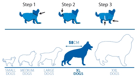 De hondenbadjas past perfect in MT. XL voor onze Golden Retriever, Hij liet het meteen toe en aan…Dus hij is ook tevreden..!